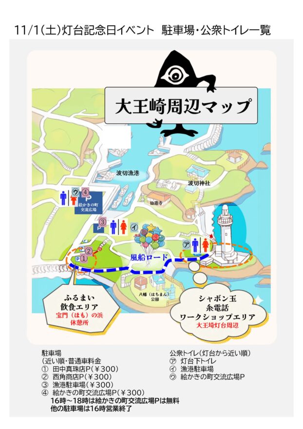 ■車 絵かきの町大王交流広場駐車場(旧大王埼観光駐車場)をめざしてね