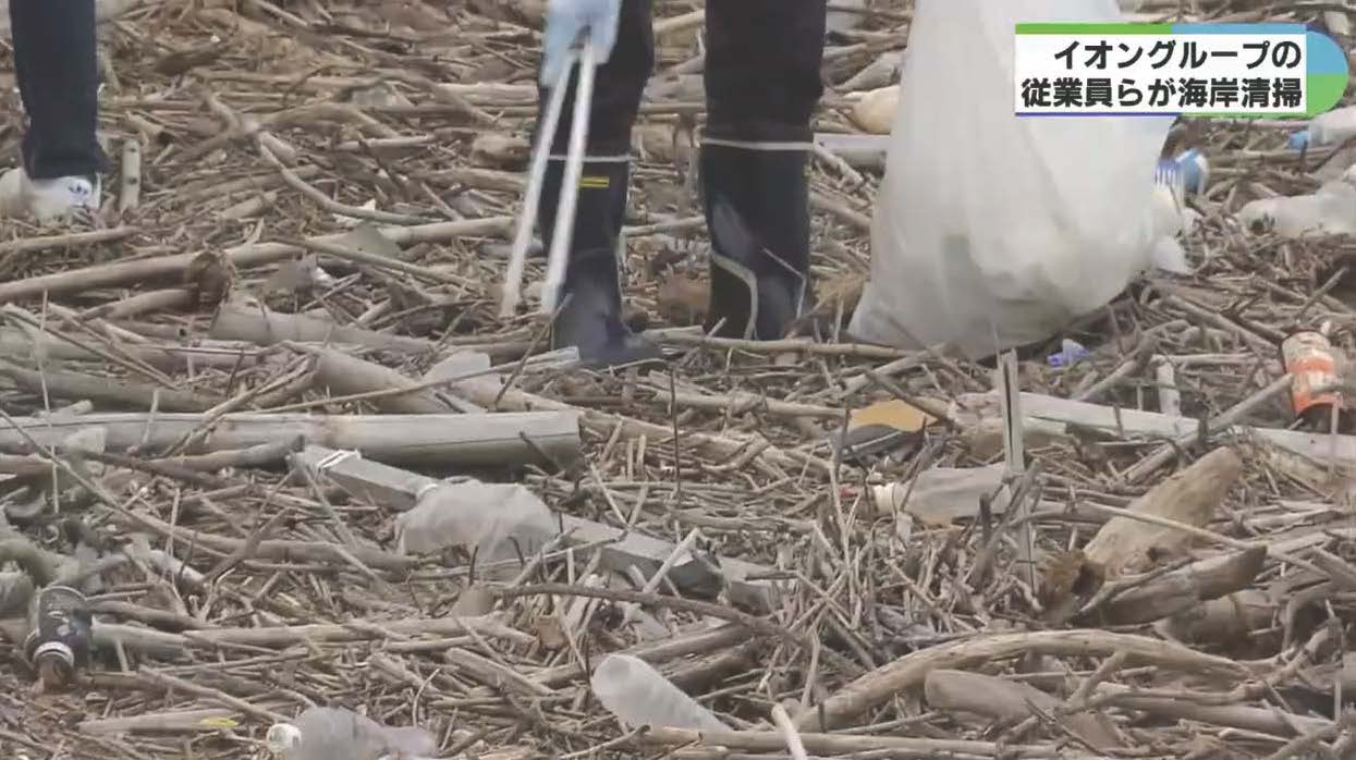 清掃活動には、イオングループの従業員ら110人余りが参加約700メートルにわたって海岸清掃に取り組みました。